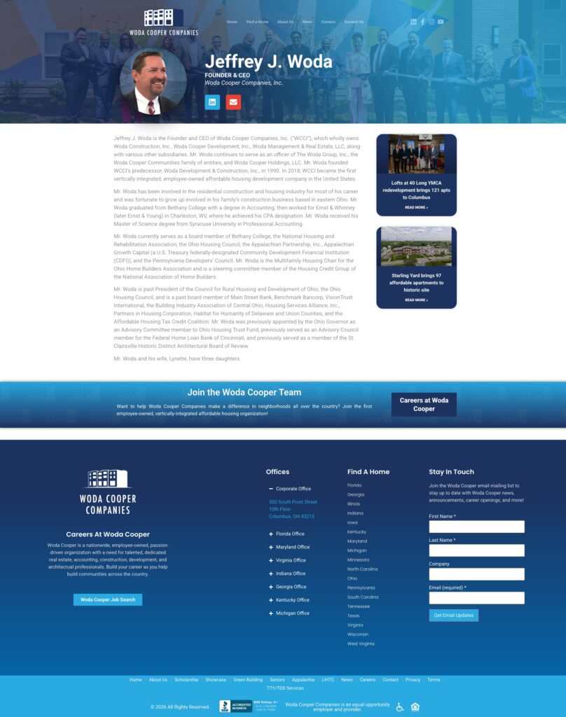 When Woda Cooper Companies needed a modern corporate website, the goal wasn’t just a redesign—it was to create a long-term digital foundation for a company operating across 18 states, hundreds of communities, and multiple business lines.